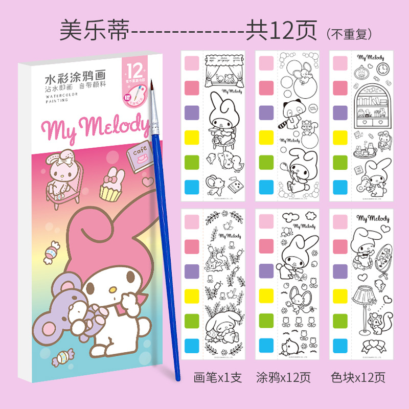 Sweet Colors for a Sweeter Imagination Add a touch of magic to every brushstroke with the My Melody Watercolor Pad. Each of the 12 adorable pages features built-in watercolor zones  simply dip the brush in water, swipe over the dry paint, and bring My Melody’s world to life. Perfect for little daydreamers and fans of kawaii charm.